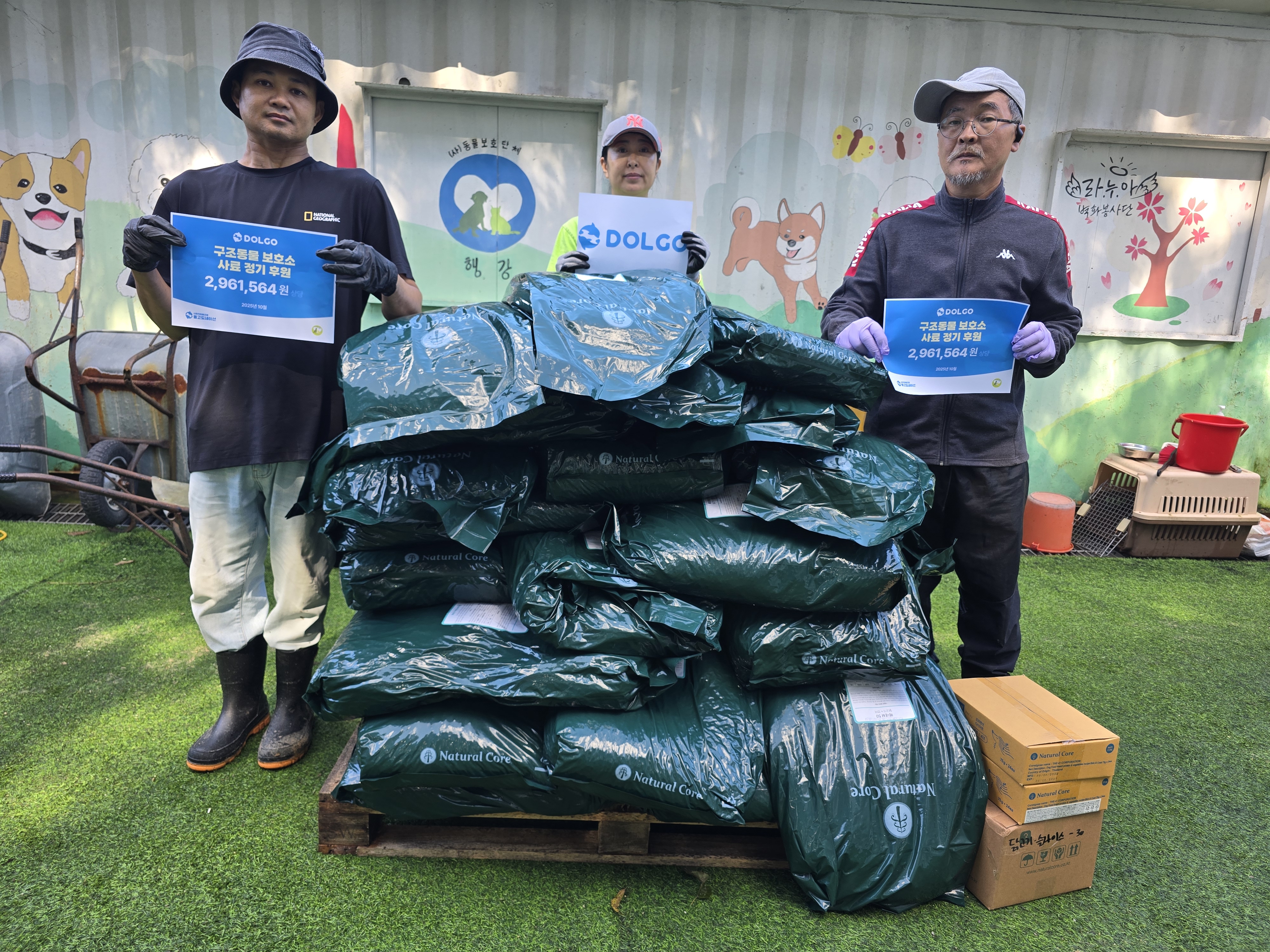10월에도 돌고도네이션에서 감사하게도 우리 행강유기견보호소 221마리의 강아지 친구들에게 사료와 간식을 보내 주셨습니다.