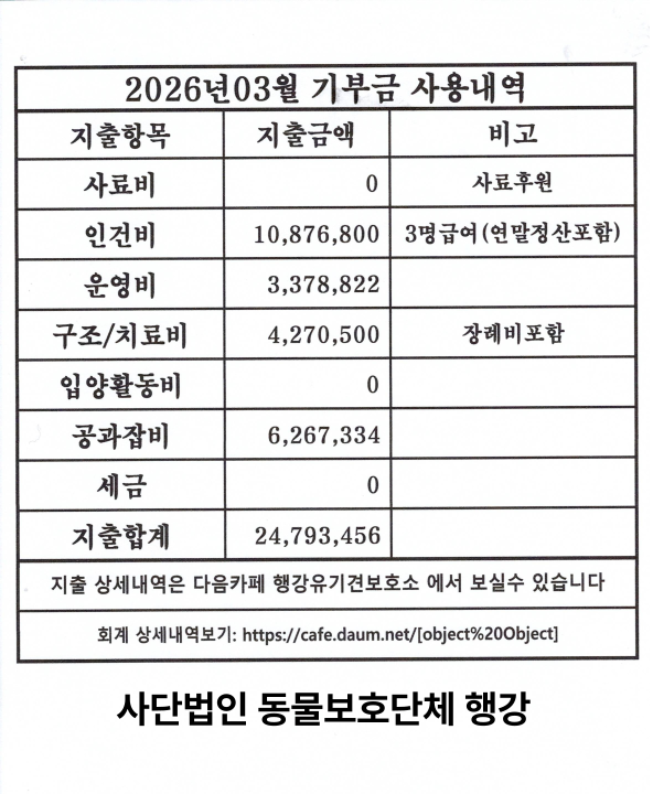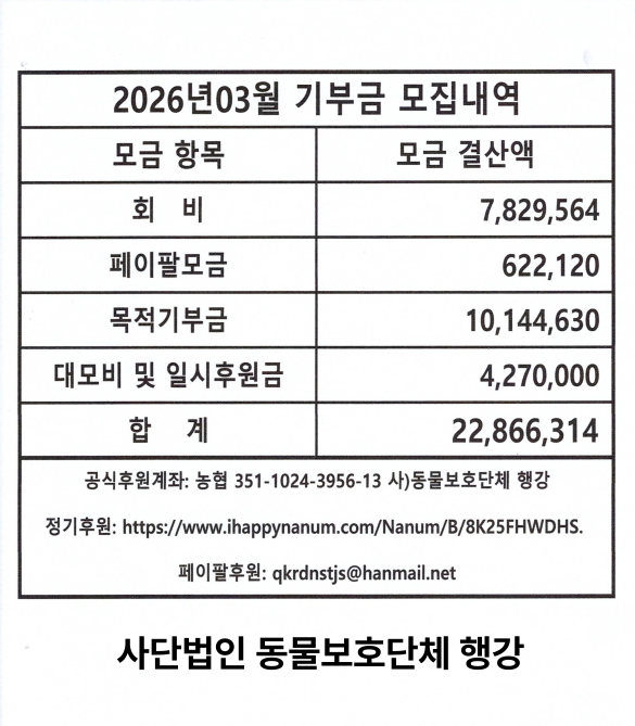 일시후원:농협 351-1024-3956-13 (사)동물보호단체행강
